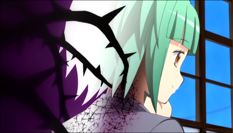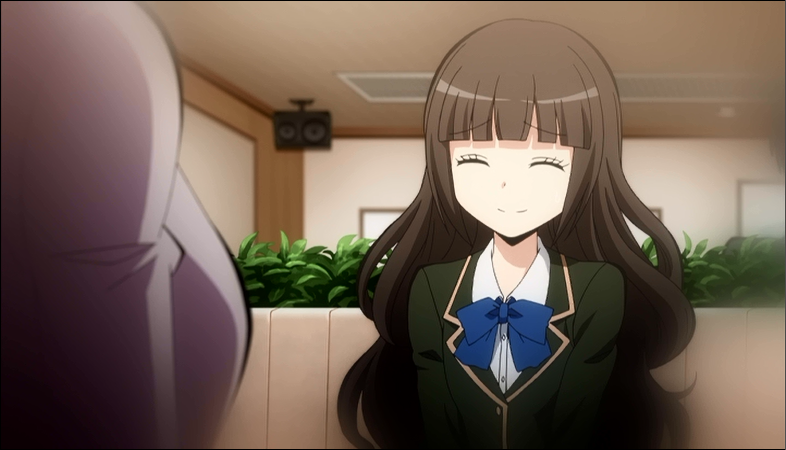 At some point not long after, she met Nagisa and decided that he was the perfect candidate to conceal her and place her as one of the background characters. She commented on his long hair and styled them into his signature pigtails. She introduced herself to him and their "friendship" began.